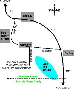 Lockwood is located in the heart of south Monterey County, east of Fort Hunter Liggett and northwest of Lake San Antonio.